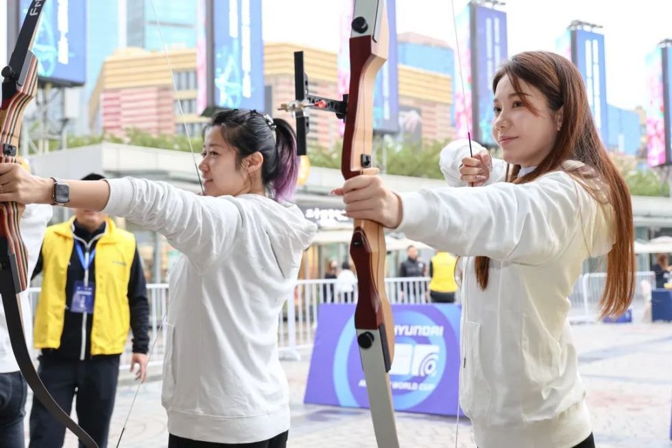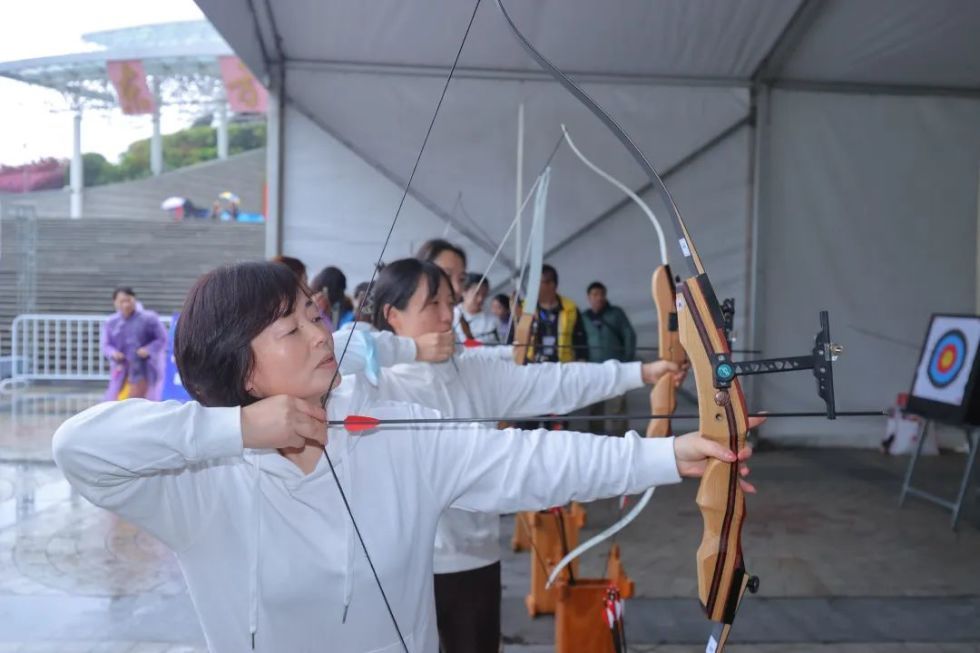 除了海选赛外,现场还设置了趣味投壶等体验区,让更多市民们有机会感受这项古老运动的文化乐趣。在专业教练的指导下,市民们纷纷拿起弓箭,尝试投射。他们或认真瞄准,或轻松挥臂,享受着这项传统修身方式。亚洲射箭联合会名誉副主席、上海市射箭协会名誉主席郭蓓表示,本次嘉年华推出的多元化活动,提高了射箭运动的吸引力和影响力,并通过邀请国际射箭爱好者进行交流和竞技,促进了射箭文化的国际传播。