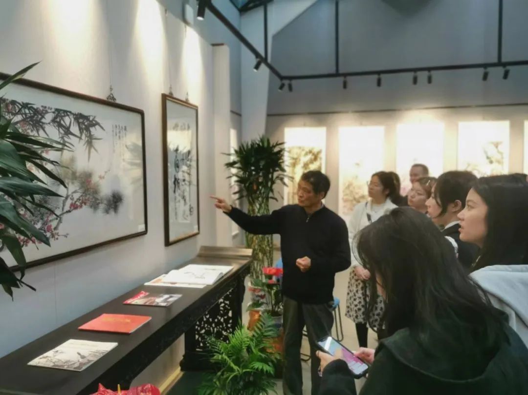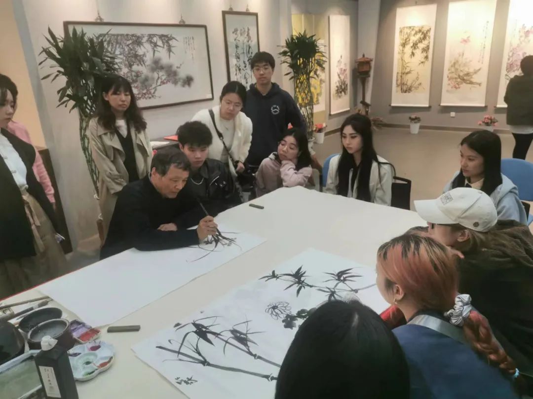 除了边观看展览,边听詹仁左教授亲自讲解,现场还进行了国画艺术现场教学和交流体验。这场别开生面的国画艺术体验课,将国画课堂“搬”带到了展览现场,搭建创新课堂,全面提升师生艺术素养,创造美育育人环境,打造艺术活力课堂。