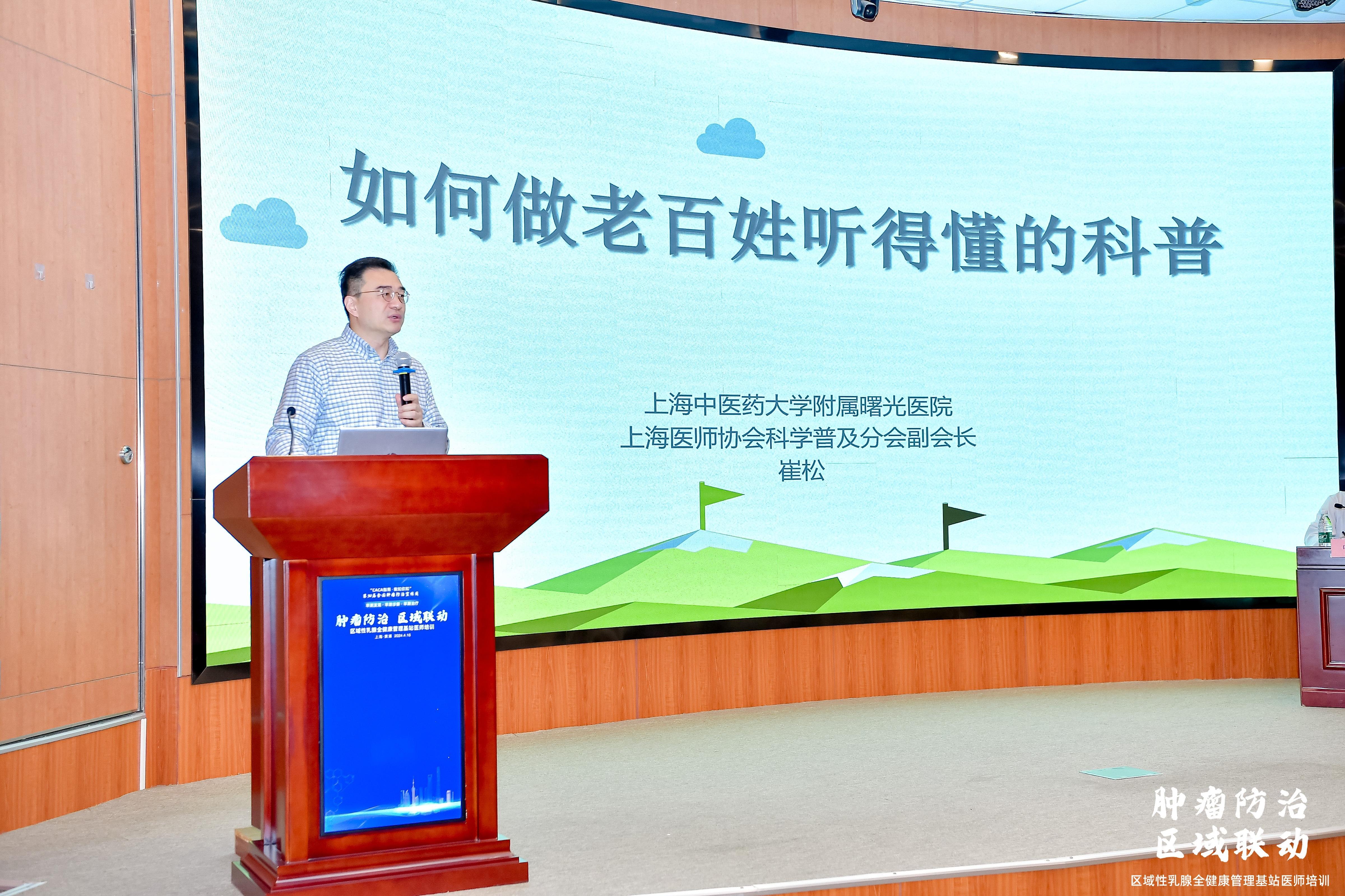 上海市医师协会医学科学普及分会副会长、上海中医药大学附属曙光医院崔松教授带来了一堂《如何做好医学科普教育》的授课,让我们深刻认识到科普教育既要讲科学性、也要富有趣味性,使公众能够有兴趣、听得懂、愿意做。在乳腺癌防治中,科普工作必不可少。通过优质的医学科普,可以帮助更多的人了解乳腺癌,提高防范意识,及早发现疾病。