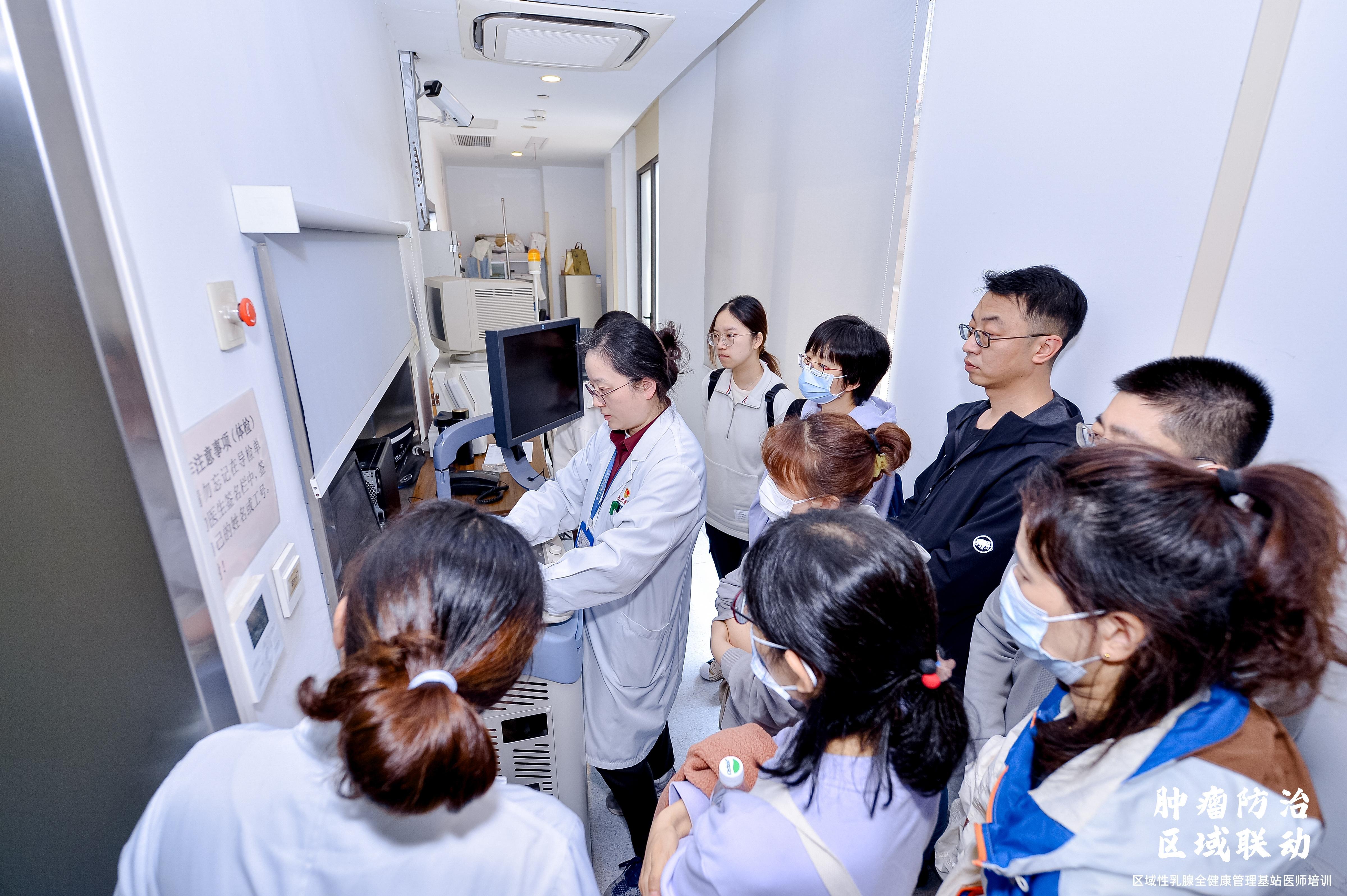 在临床实践中,医院也注重把肿瘤科、内外科、放疗、影像、病理这些科室结合在一起,发挥多学科团队的优势,为肿瘤患者量身打造更符合其个体化需求的精准诊治方案。本次活动中,上海第九人民医院黄浦分院超声科笪应芬主任、放射科张燕主任、病理科常玉清主任、放疗科陈刚主任还分别进行了乳腺肿瘤超声、放射、病理、放疗方面的实操演示。他们的示范让区域内乳腺全健康管理基站的学员更直观地了解了相关检查和治疗手段的操作流程,也让社区医师对乳腺肿瘤的规范化诊断和治疗有了更加全面的认识。
