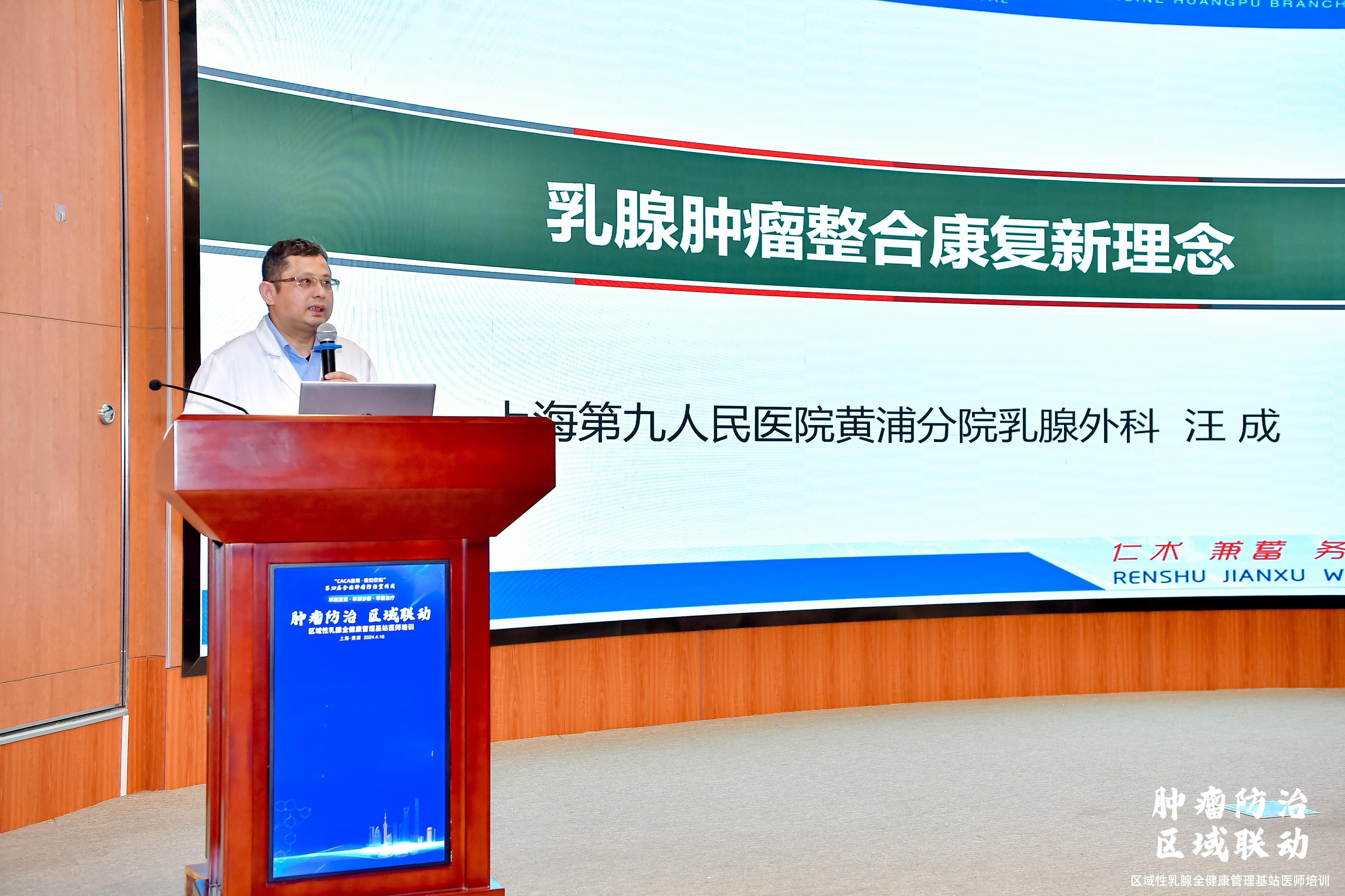 中国抗癌协会乳腺肿瘤整合康复专委会副主任委员、上海市抗癌协会乳腺癌专委会副主任委员、上海第九人民医院黄浦分院乳腺外科汪成主任分享了《乳腺肿瘤整合康复新理念》,强调了整合和康复在治疗中的重要性。在乳腺肿瘤防治中,预防、筛查、早诊、综合治疗以至康复,自始至终贯穿疾病诊治全程、患者全生命周期。一个综合的、个性化的康复方案可以帮助患者更好地恢复健康,提高生活质量。