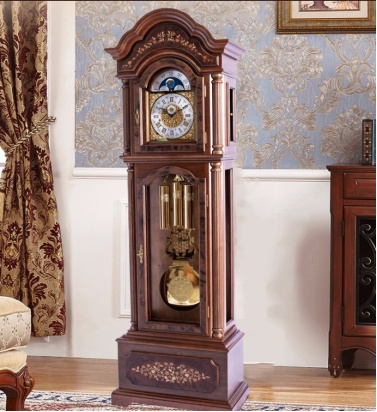 落地钟—链条机芯:重锤是通过拉动链条上去的。当拉动链条的时候,请不要用手提拉重锤。链条拉到离钟机芯木架5公分的位置就该停止。不管在任何情况下,重锤会跟着拉链条而同时提升的。
