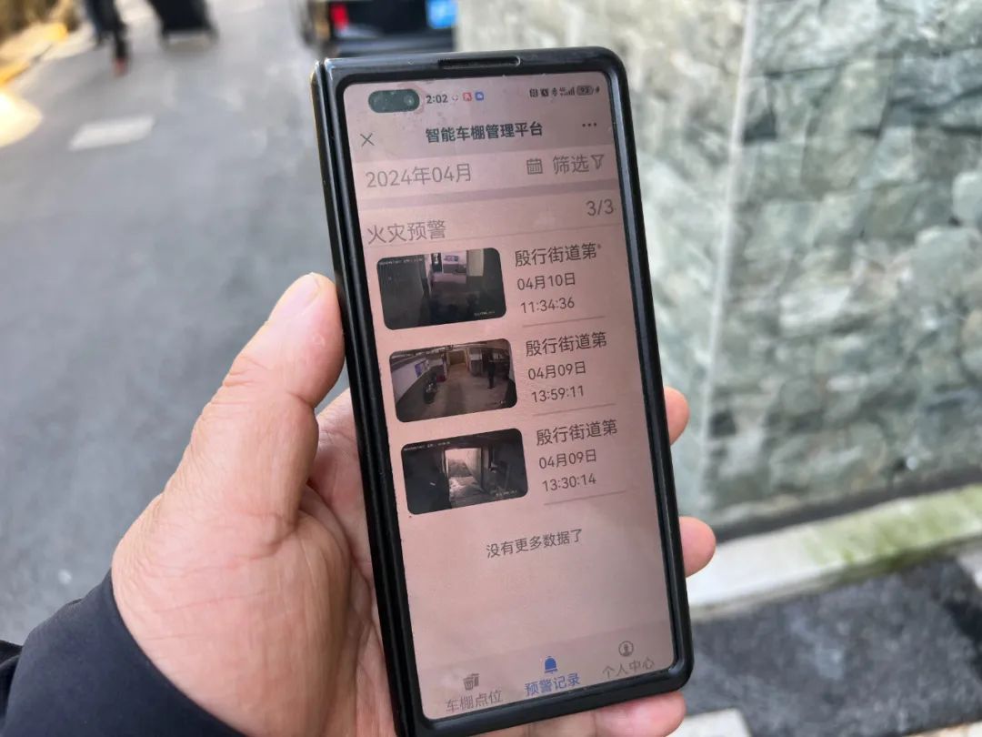 在街道城运中心的一网统管大屏上,智能车棚管理平台囊括了173个智能车棚的实时监控。在现场模拟实验中,记者看到,工作人员将点燃的香烟靠近烟雾报警器周边,车棚报警系统开启,与此同时城运中心大屏上会在相应区域发出异常情况提醒。