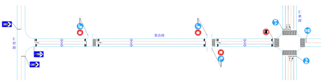 为规范和加强鲁浩路道路交通秩序,提高道路通行效率,保障群众的出行安全,经过各相关部门实地调研和协调沟通,商定对鲁浩路(汇秋路-汇舒路)的标志标线进行单向交通优化,机动车辆采取自西向东单向通行,增设提示牌15块、学校门口人行横道线2条,进一步规范该路段的行车、停车秩序。