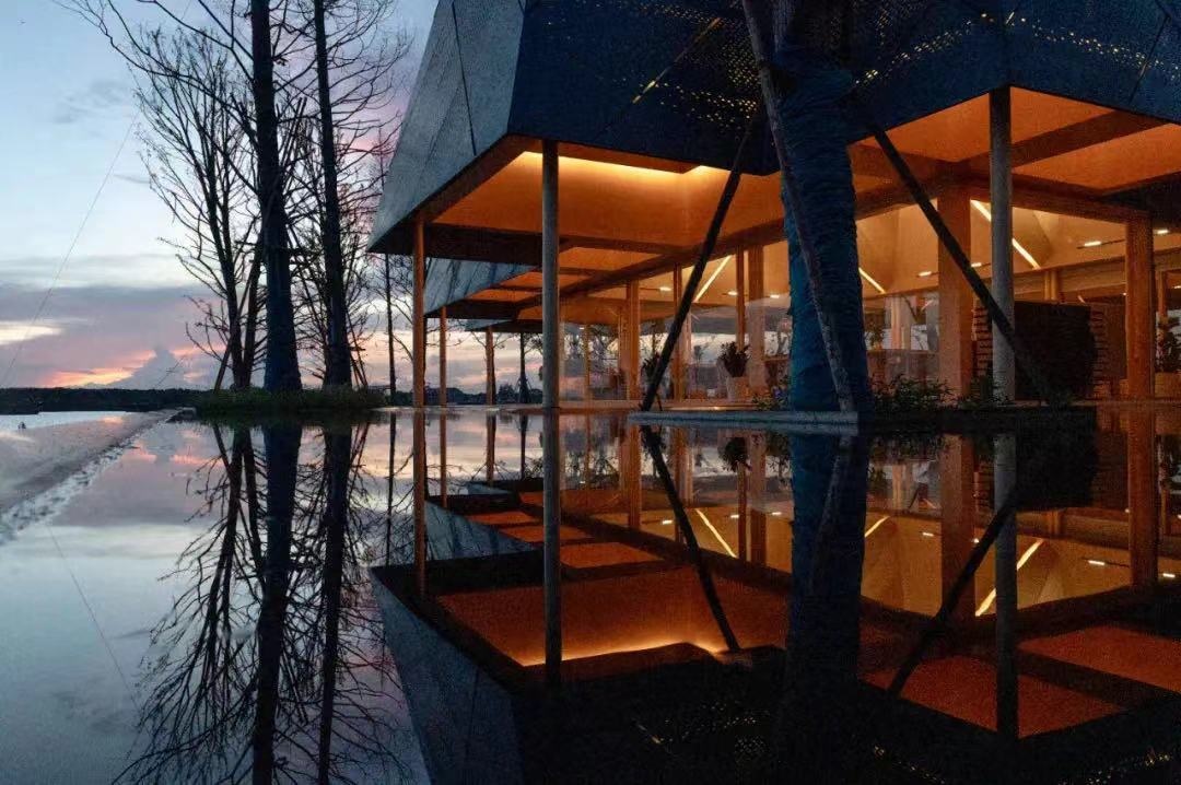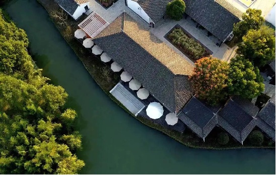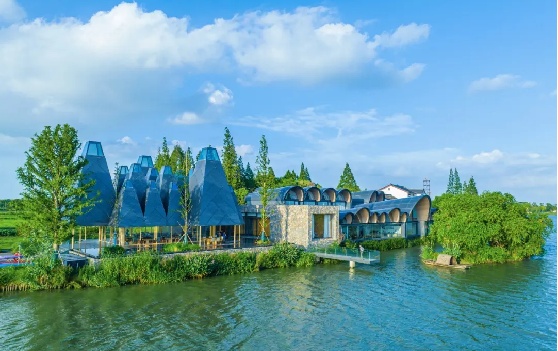 三好村位于周湖线南,北临白蚬湖,东接周庄古镇,西达同里古镇,是鼋荡美丽乡村群片区、“曲水善湾”乡村振兴美丽吴江样板区项目的重要组成部分。“曲水善湾”由汾湖高新区(黎里镇)和苏州蓝城文旅有限公司携手打造,以“品质度假”“艺术文创”“共融共生”为特色,呈现大地、自然、人与村落和谐共生的美丽乡村新业态,力求保留原村庄肌理,还原村庄风貌,设计师匠心独运,将建筑与自然有机融为一体。春晓·水杉居,整个建筑模仿本土水杉的样貌,贴近自然又独树一帜,每天吸引周边市民游客前来打卡,俨然成为长三角的“网红”。船坞民宿,设计灵感就来源于江南的乌篷船,错落别致的乌篷船拱形船顶,极具江南水乡特色风情,古韵墨香的文化意境,为游客带来别样的入住体验。“曲水善湾”集餐饮美食、民宿体验、休闲娱乐、亲子活动于一体,全方位满足不同游客的需求。
