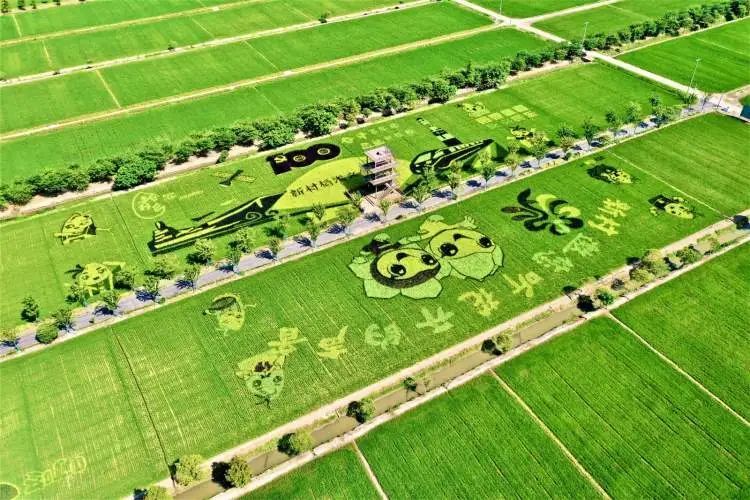 乡村市集也会不定期举办,家用百货、特色美食、创意文创、干果炒货等摊位琳琅满目,都市来的游客可以感受在村里淘宝的乐趣,新村居民可以享受在家门口“零”距离购物的便捷。6月,小朋友可以来新村乡参加稻香研学营,下田劳作,学习使用传统农具、体验插秧,感受劳动的辛苦与乐趣,从中了解稻米生产过程、感知稻米文化。暑假和秋季有帐篷节和骑行游乐活动,游客可以在一望无际的稻田边上搭帐篷,参加写生活动,用笔触描绘多彩的稻田。白天可以参加骑行活动,游览稻米文化小镇美景,观赏“四不像”麋鹿;晚上一起数星星、看月亮,寻找内心深处的居所。秋季会有丰收节,市民游客可以一起来收割水稻,体验丰收的喜悦;冬季会有年味市集,大家一起热热闹闹赶大集。近年来,新村乡专注于稻米文化小镇建设,不断打造高标准农田,建立农产品绿色生产基地,力求种出更优质、更美味、更健康的新村大米。今年,新村乡的稻米种植面积为2.6万亩。新村乡的稻田艺术画颇有知名度,每年都吸引不少游客前来观赏。今年的稻田艺术画将与复旦大学哲学学院合作,用哲学智慧赋能大地艺术,将哲学理论、哲学思维写在大地上、乡村中。“稻田画正在设计中,5月能完稿,6月插秧季准备实施。”新村乡相关负责人介绍。新村乡的稻田艺术画始于2019年,是“稻米文化小镇”建设的文化载体之一。稻田艺术画位于新中村村委会西南区域一块约30亩的水稻田里,用五彩稻品种打造,稻田旁还专门建造了一座观景台,游客可以登高俯瞰稻田艺术画全景。稻田画周边还打造了花宅、花路,给游客更好的沉浸式体验。