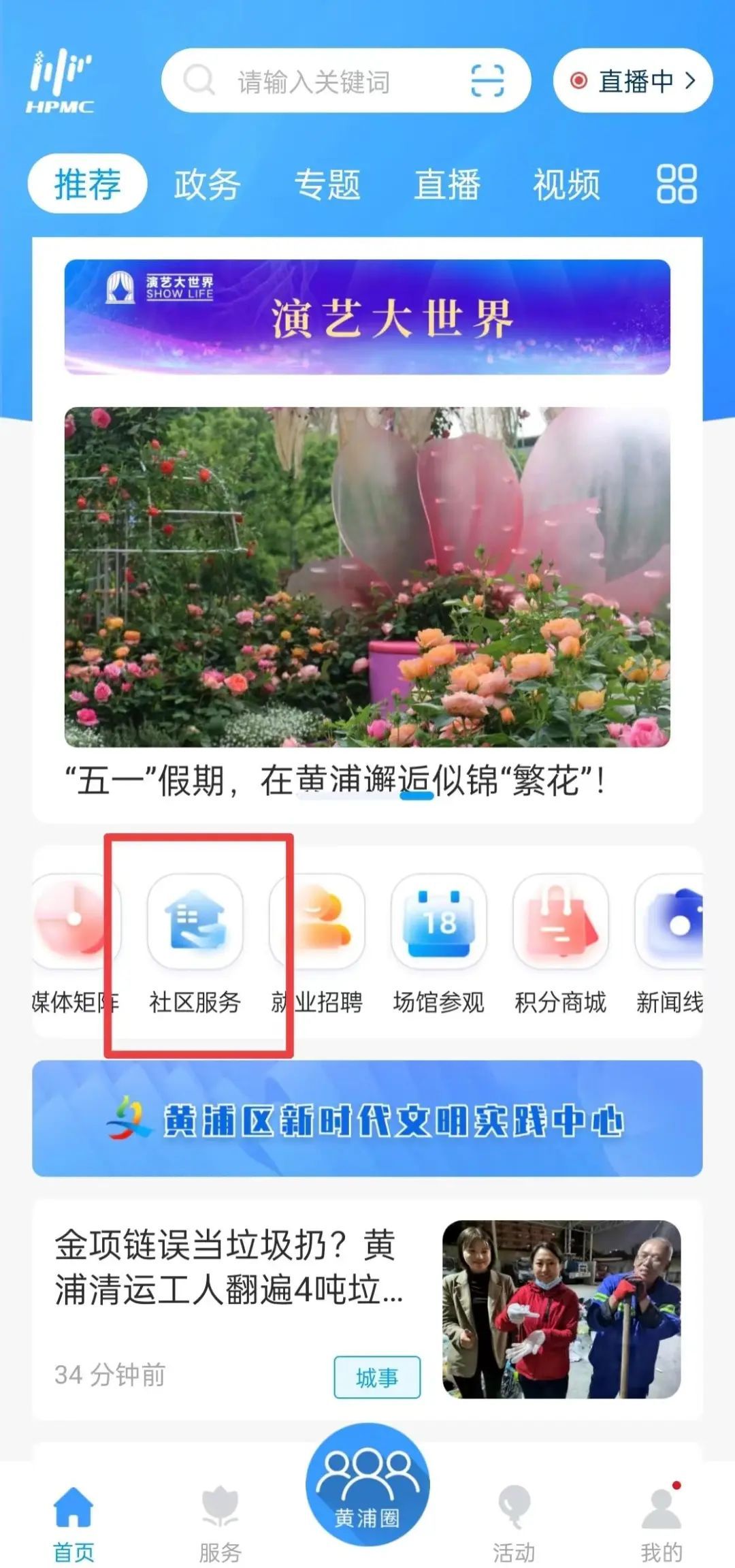 1.手机应用商店下载“上海黄浦”App,在首页服务板块找到该服务入口,点击进入。