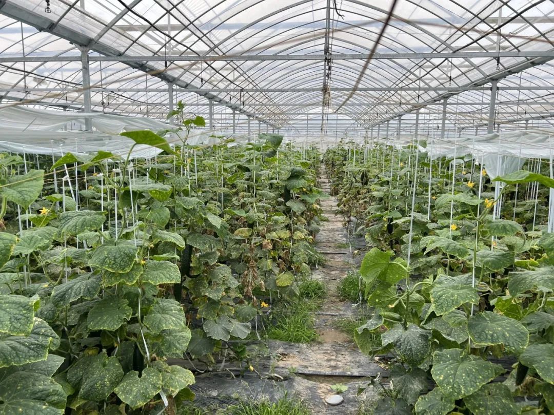 大棚里黄瓜的清香溢满鼻腔,一个个如青玉般细润的小黄瓜在翠绿的叶片衬托下,格外诱人。