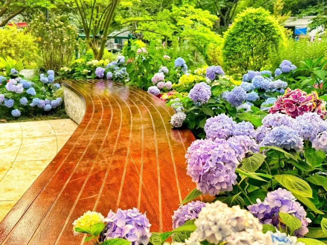 花园内的香榧树绿树成荫,半阴空间里充分打造了供人停留、休闲之处,花境观赏区种植八重唐梅、紫薇、红枫、蓝冰柏、安酷杜鹃、金边六月雪、瑞香、金叶大花六道木、迷迭香等多种植物,点缀在佛甲草铺底的花境之中……午餐时能够看着这样的美景,又何尝不是享受到了免费的“景观位”?