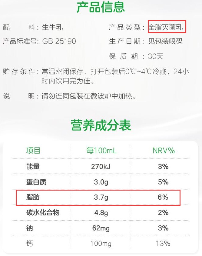 2、全脂奶的脂肪含量3%-4%,脱脂奶小于0.5%,低脂奶1.0%-1.5%。