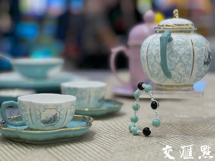 与此同时,在江苏展厅的“苏茉莉小屋”板块,由江苏高淳陶瓷股份有限公司带来的“丝路国宴”和“春华”两个系列的骨质瓷餐具、茶具,运用手工描金和特殊珐琅彩工艺,呈现出了传统的中国韵味和当代中国陶瓷工艺的最高标准,吸引了不少观众驻足拍照。