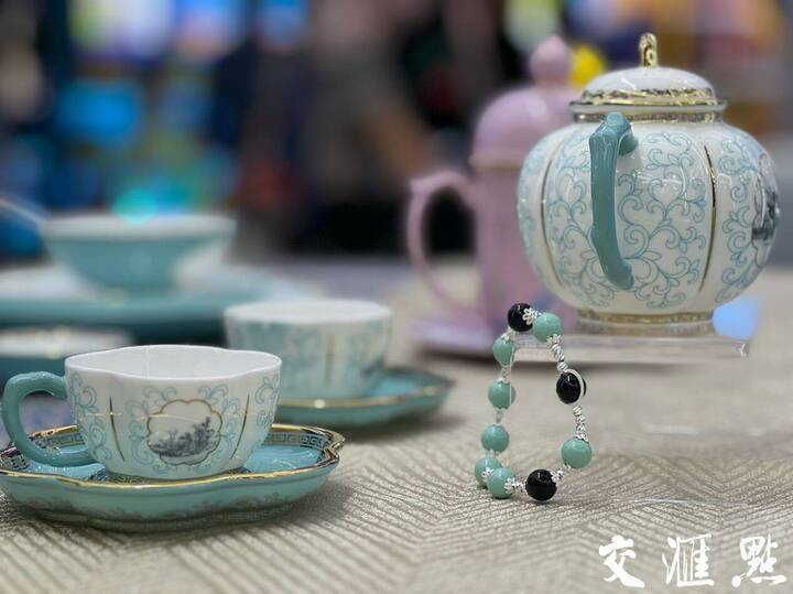 在江苏展厅“苏茉莉小屋”板块,由江苏高淳陶瓷股份有限公司带来的“丝路国宴”和“春华”两个系列骨质瓷餐具、茶具,运用手工描金和特殊珐琅彩工艺,呈现出了传统的中国韵味和当代中国陶瓷工艺的最高标准,吸引了不少观众驻足拍照。