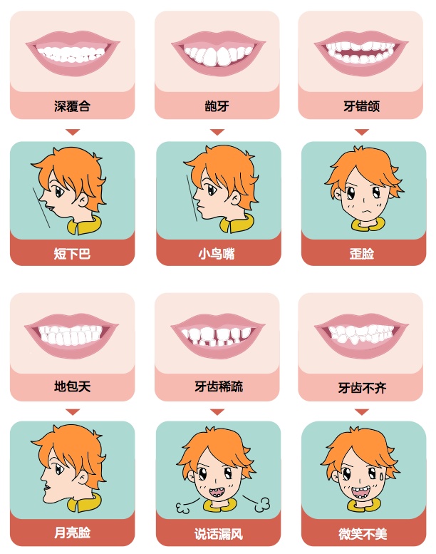 ▲牙列畸形导致的颌面部问题