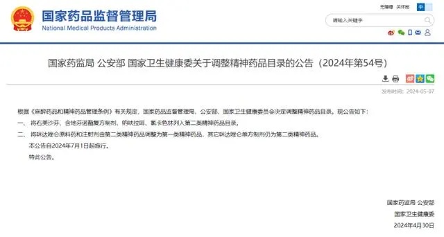 5月7日,国家药监局官网显示,国家药监局、公安部、国家卫健委联合发布关于调整精神药品目录的公告,将右美沙芬、含地芬诺酯复方制剂、纳呋拉啡、氯卡色林列入第二类精神药品目录。公告自2024年7月1日起施行。记者随机走进沪上一间药房,询问是否有售"右美沙芬",工作人员表示,没有"右美沙芬"单方制剂,但有复方制剂"右美沙芬愈创甘油醚糖浆",属于非处方药,可直接购买,1岁以上儿童就能使用。药房工作人员表示,它是合规的,就是没有超标,它这个量可以用的。记者致电药房询问,店家表示"氢溴酸右美沙芬"是 "右美沙芬单方制剂",该药品需要医保电子处方或医生手写处方才能购买。2021年12月,国家药监局发布公告称,将原属于非处方(OTC)的药品(氢溴酸)右美沙芬转为处方药(RX)管理;