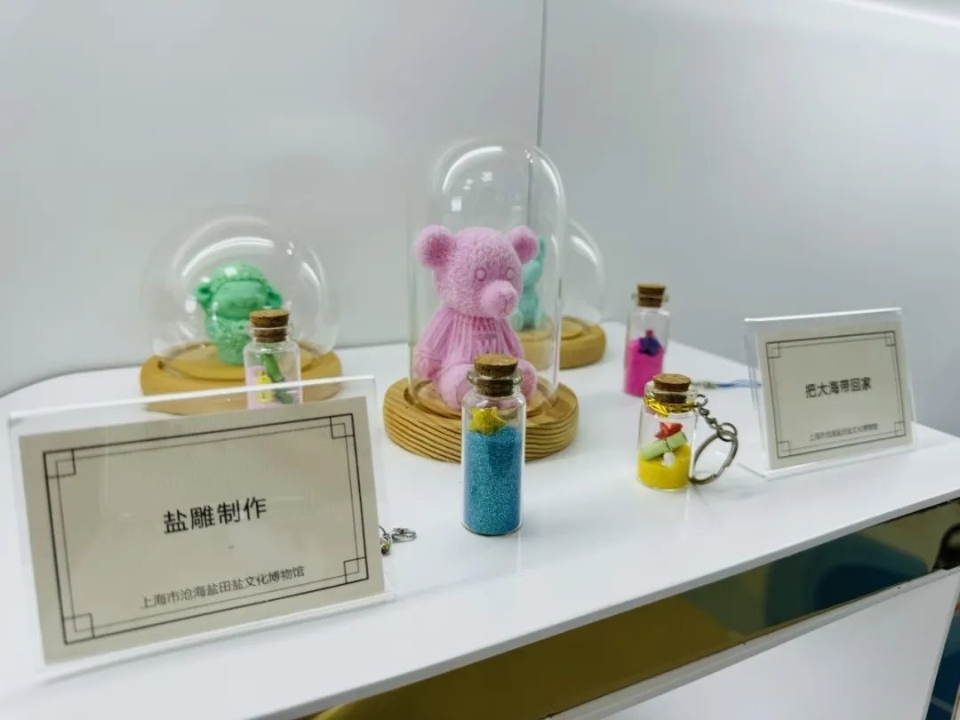 活动上,海涯村老盐民与蒋庄村学生进行了盐文化非遗传承结对仪式;短剧《一口铁锅》生动展现出盐民的精神并传承红色盐文化故事;“盐”途有你——盐文化传承微访谈,向市民群众讲述了金山地区盐业发展史、民俗习俗、盐民精神等内容。在漕泾镇沧海盐田盐文化博物馆内,还展示了各类以“盐”为主题的文创产品,有利于更好普及盐业知识,提升公众对盐文化的认识与理解。