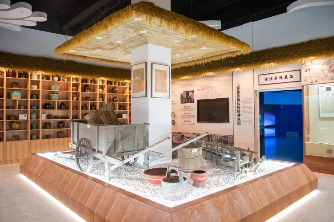正逢国际博物馆日,今天下午,金山区漕泾镇沧海盐田盐文化博物馆的非遗展厅正式开幕。在这所上海最“咸”博物馆内,老盐民与学生进行盐文化非遗传承结对仪式,并开展了互动体验、教育讲座、亲子活动和文化表演,充分展示盐文化民俗的独特魅力。
