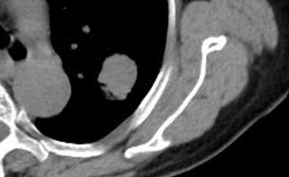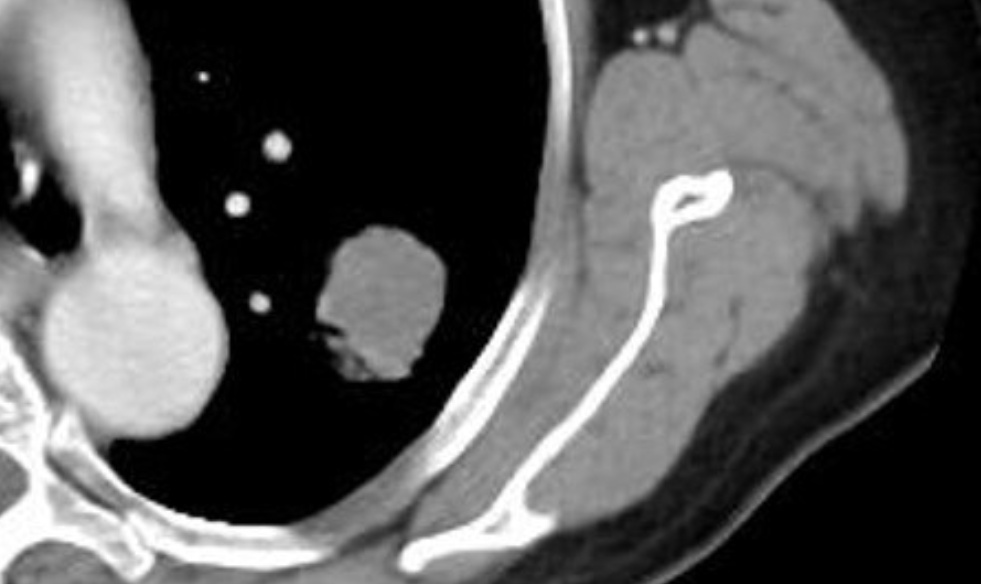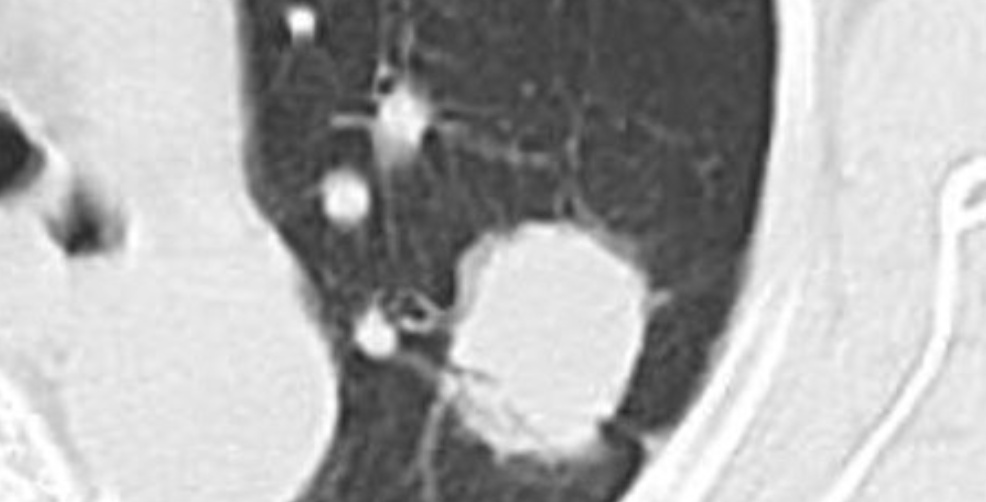 实性结节的重点是“实”,相对于磨玻璃结节而言,在实性结节内部看不到原来的肺部结构;