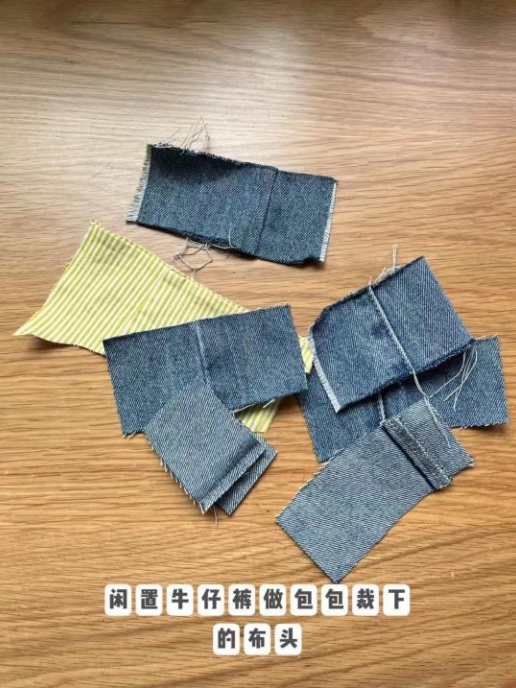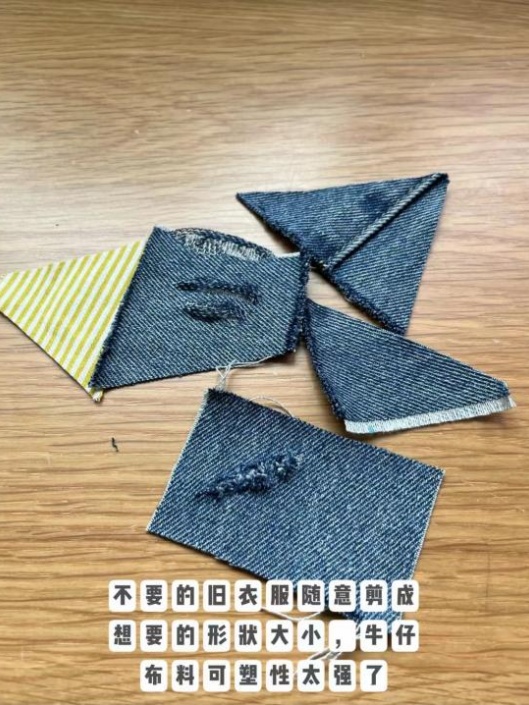 第二步:将牛仔裤、衣服布料随意剪成想要的形状大小