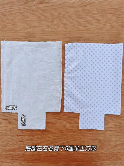 第三步:底部左右各剪下5厘米正方形