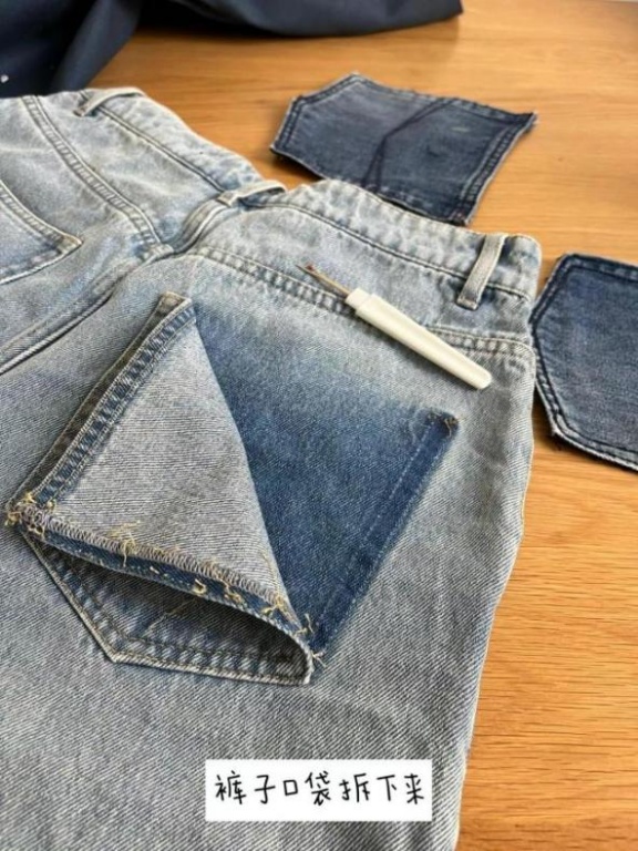 第一步:裤子口袋拆下来