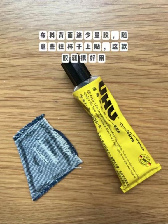 第三步:布料背面涂少量胶,往杯子上贴