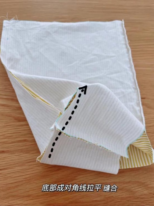 第四步:底部成对角线拉平、缝合