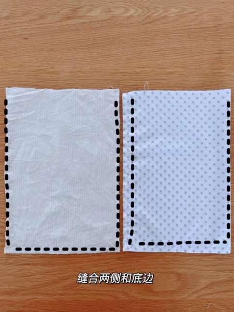 第二步:缝合两侧和底边