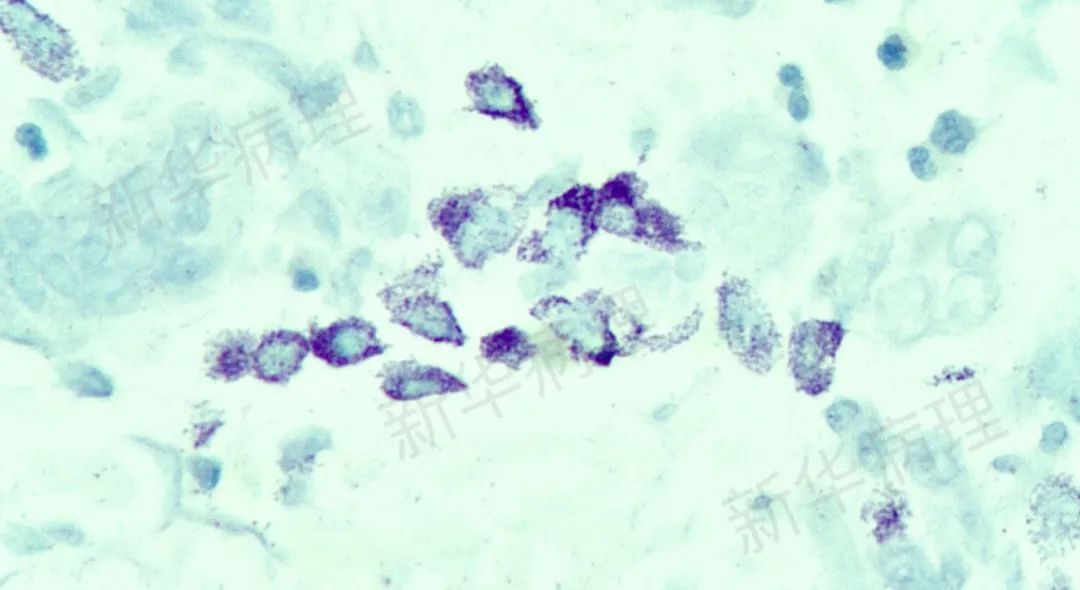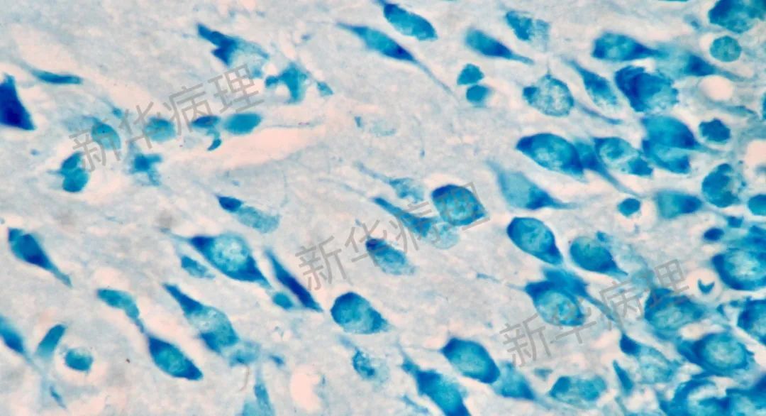 常规使用的HE染色,只有苏木素蓝(染细胞核)和伊红(染细胞质和膜)红蓝两种颜色;特殊染色拥有更加丰富的色彩,这种染色方法,又叫组织化学染色,能把细胞内外不同的特殊化学物质直接显示出来。