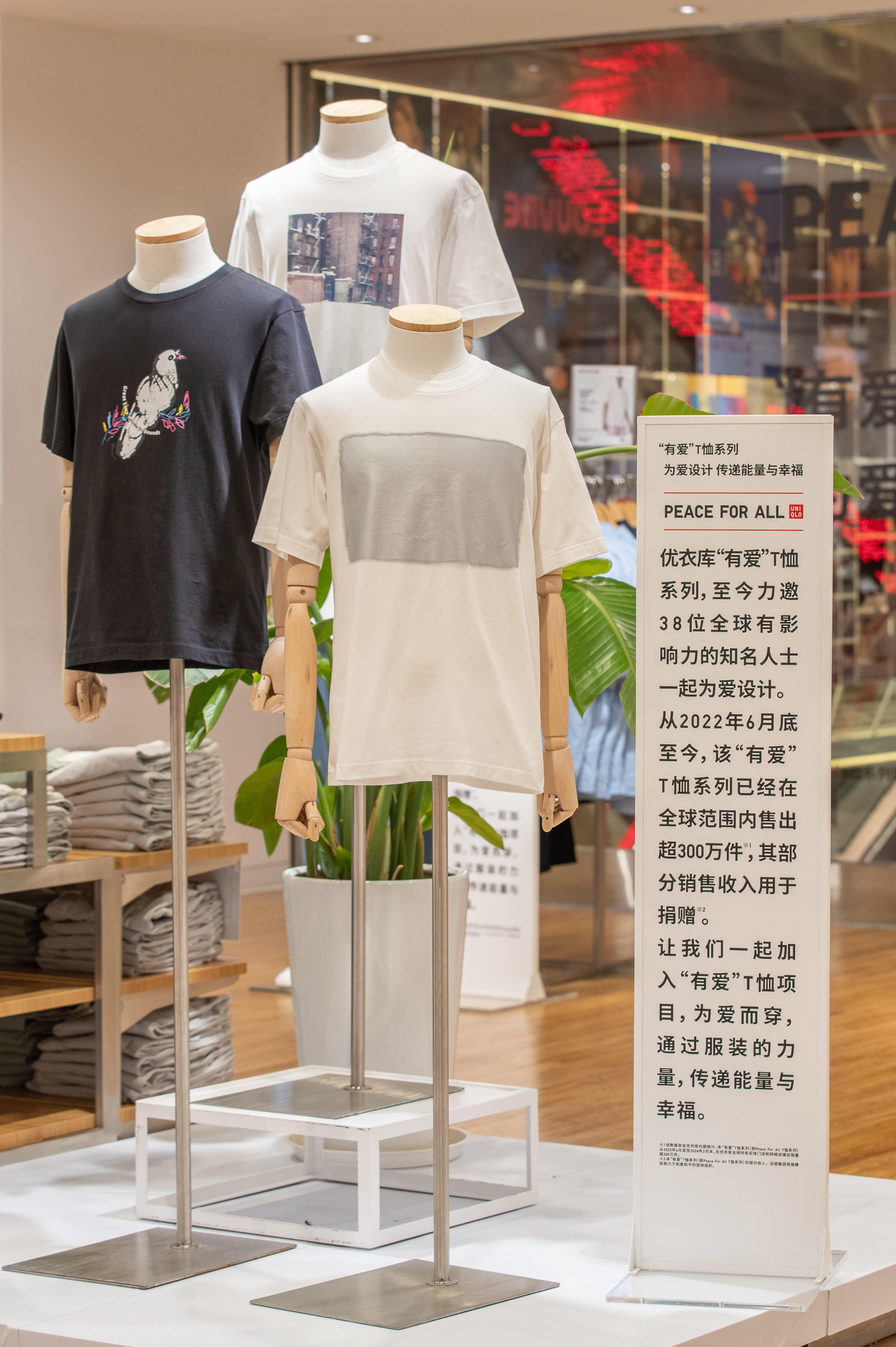 一件“有爱”的服装,能跨越地域、年龄与文化的界限,成为传递能量与幸福的载体。服装零售品牌优衣库,在2022年6月启动了"PEACE FOR ALL"(“有爱”)的T恤项目,邀请来自世界各地与优衣库拥有相同愿景的艺术家、设计师等知名人士及组织,为爱设计,表达对世界和平的美好祈愿。自上市以来,在全球热销超过400万件,其部分销售收入用于捐赠给祝愿和平的团体组织。