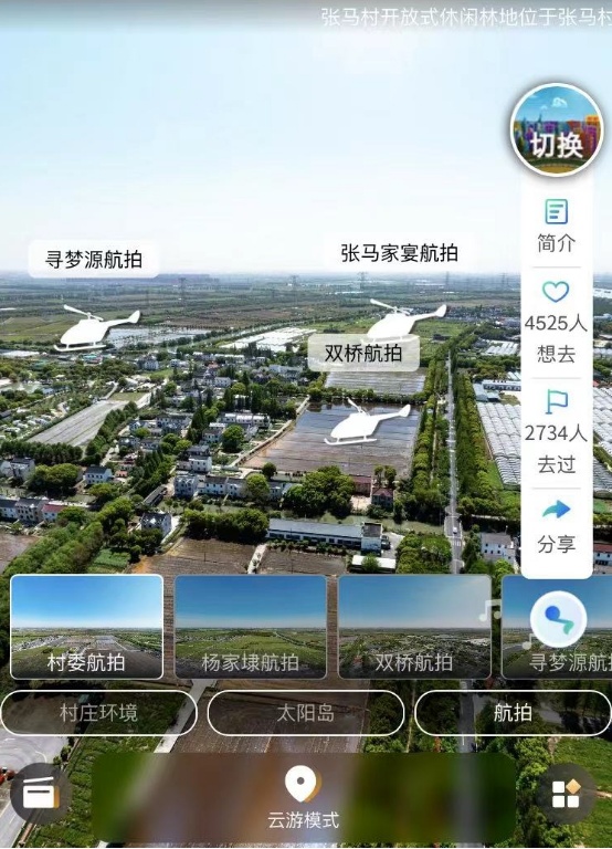 据介绍,该全景定制VR采用720°全景拍摄+全景航拍的方式,标注张马村景区主要标志建筑物及景点进行全景拍摄,市民无须安装任何软件,点击平台链接即可观看张马村VR全景。