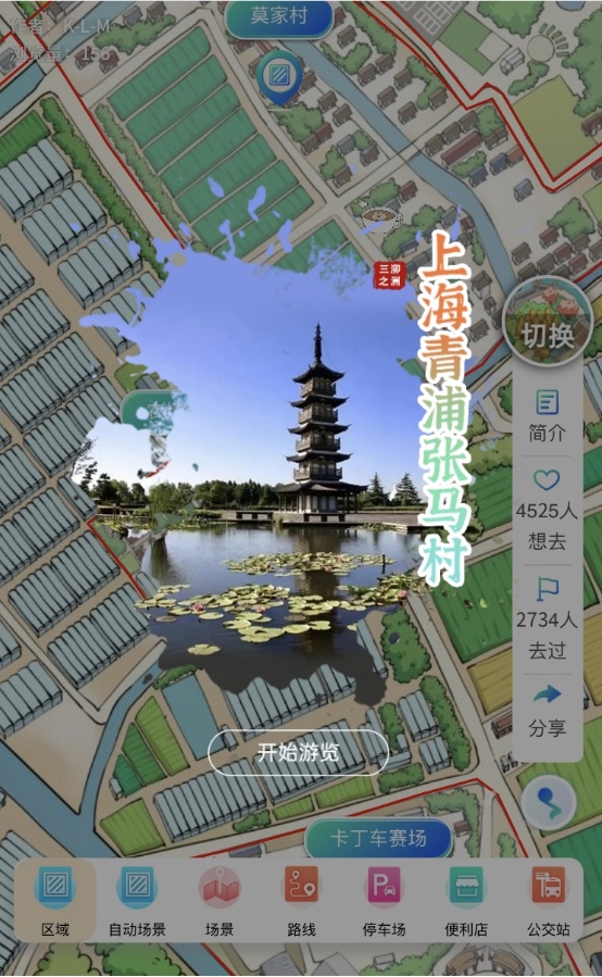 记者打开张马村VR链接后看到,古风漫画般的张马村全域导览图缓缓滑动,功能菜单设置了区域分布、景点介绍、游览路线、交通路线、停车区域、便民商店板块,点击“场景”后,可720°高清全景欣赏村委会、游客中心、寻梦园、农情园、太阳岛、张马公园等多个游览点位,以人在画中游的视角通过720°全景音视频全面了解张马村新农村建设的成果。