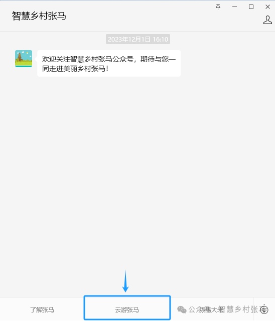 进入“智慧乡村张马”公众号对话页面,点击