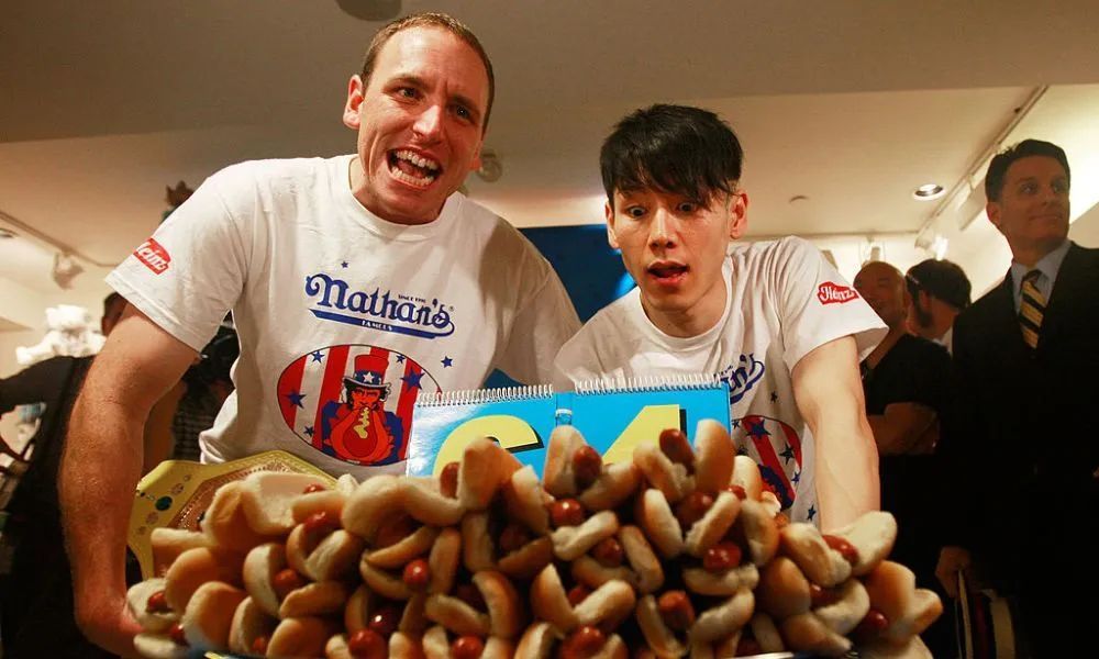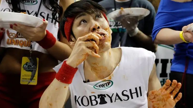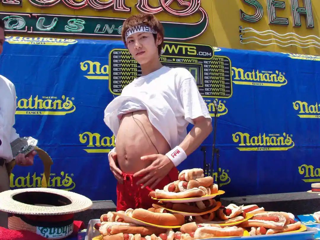 小林迅速在竞技吃播界崭露头角,2001年至2006年期间连续六次赢得Nathan’s热狗大赛冠军,成为全球知名的吃播选手。他的独特吃法“小林摇”(Kobayashi Shake)也闻名遐迩,这种方法包括将热狗蘸水,然后通过身体晃动使食物更顺畅地滑入胃中。