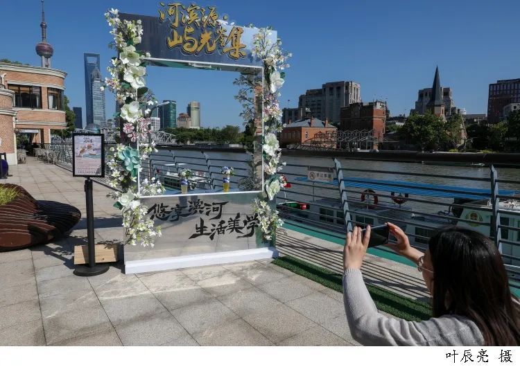 郁金香、绣球花渐次绽放,滨水岸线贯通后的苏州河一年四季不缺花香。风景虽好,但距离畅享滨水生活还存有堵点。腹地空间充裕的苏州河虹口段,不少咖啡馆因外摆经营出圈。乍浦路桥畔的“吉生活”咖啡馆,在临河木栈道上铺设了一排外摆位,原木色坐凳桌椅无缝融入景观,游人抬头即见陆家嘴最美天际线。