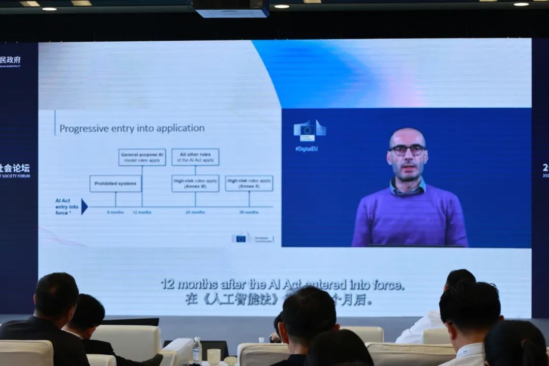 演讲最后,加布里埃尔·马志尼提醒:“《人工智能法》将来生效后,并非所有规则都于同一时间生效,而是将根据内容,分阶段开始生效。”