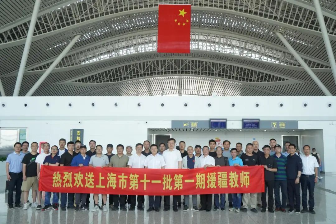 万里沪喀,桃李成蹊。2023年2月15日起,上海市第十一批第一期55位来自浦东、闵行、宝山、静安四区,以及同济大学、上海大学等18所高校的援疆支教教师,扎根于上海对口支援四县莎车、泽普、叶城、巴楚的讲台之上,至2024年7月3日圆满完成教育援疆任务,于喀什徕宁国际机场乘机返沪。上海市援疆前指总指挥孟庆源、副总指挥王陈等前往机场送别教师,并对援疆教师工作表示高度肯定,感谢他们为沪喀两地深度交往交流交融、教育援疆工作奠定了扎实基础,揭开了崭新篇章。