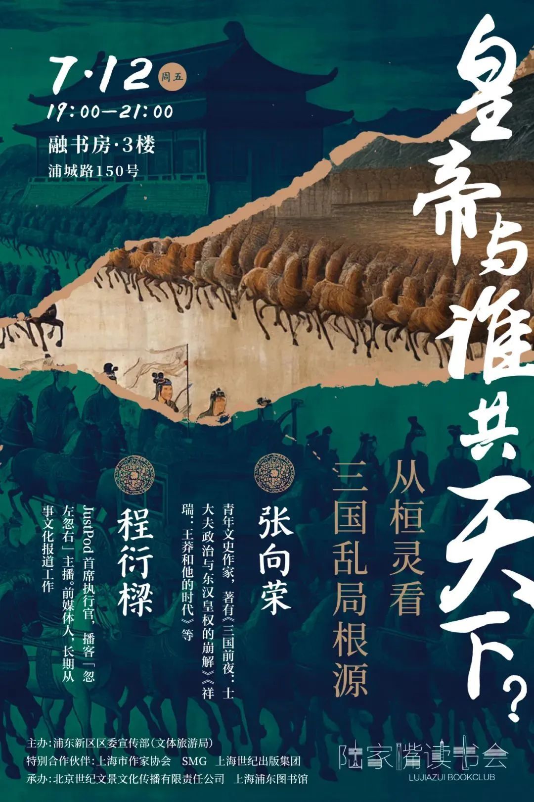 本周五(7月12日)19:00—21:00,我们邀请到青年文史作家张向荣和JustPod首席执行官、播客「忽左忽右」主播程衍樑,和读者一起走进三国前夜,把脉三国乱局的根源,看一场王朝的日落。