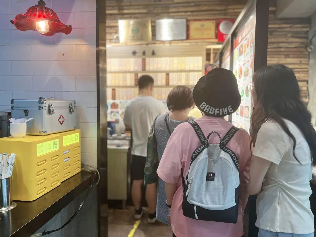 记者在现场看到,下午两点,虽已过了中午饭点,但仍有食客纷至沓来,冷馄饨和刨冰的点单率尤其高。一位特意来上海旅游的食客说,很早以前在淮海路吃过沧浪亭的面,没想到沧浪亭和盛兴点心店“联名”了,“上海这个天吃面太热了,今天点了冷馄饨和刨冰,味道都在线。”