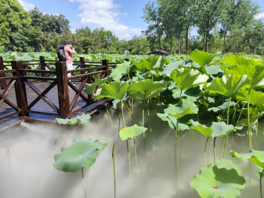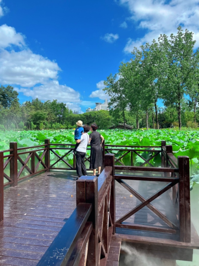 在骄阳照耀下,荷花池仿佛成了一幅流动的画卷,让人流连忘返。随着荷花陆续盛开,园内的夏日也变得更加生动和多彩,游客可以在这些地方找到属于自己的清凉和宁静。