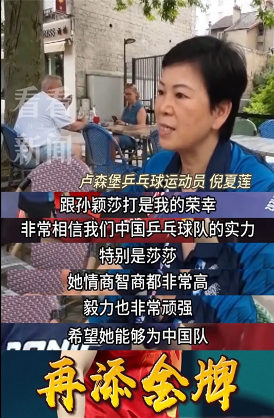 虽然倪夏莲加入了卢森堡国籍,但她始终觉得自己是中国人。在奥运会赛场展示的也是永不言败的中国形象、中国精神。