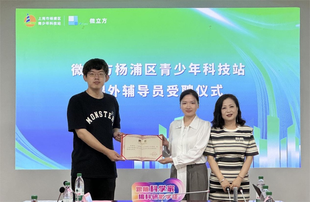 协同育人十四载,砥砺前行启新航。孙青站长为上理工微立方团队颁发了“科普志愿者团队”聘书,期待上理工光电信息学院与杨浦少科站共同擘画出站校合作新蓝图。