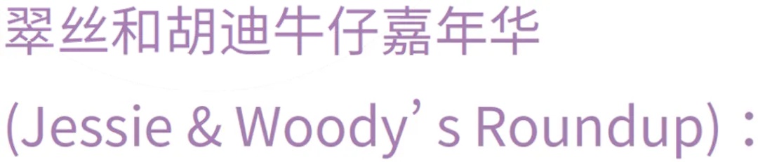 出现在《玩具总动员2》中,“Woody’s Roundup”是安迪世界里的动画故事,主角就是胡迪,翠丝是动画中的女主人公,而小马红心(Bullseye)则是胡迪警长最爱的坐骑。电影中,三人经历了相识、相知的过程,最后终于一起来到了安迪的家。玩具总动员主题园区呈现的是一个精彩的玩具世界,玩具是这里真正的主人,所以每个玩具都有自己的名字,“胡迪牛仔嘉年华”里的小马也不例外,这里的22匹小马(11匹公马、11匹母马)每个胸前都有自己的专属名牌哦!