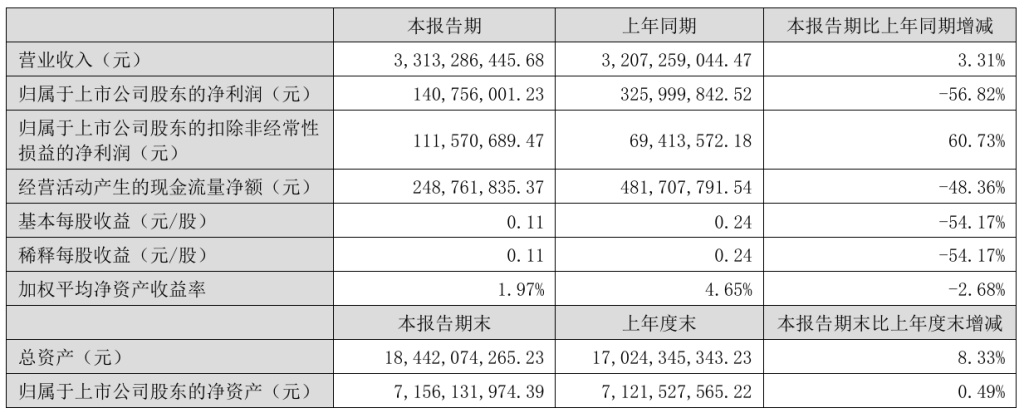 归母净利润同比下降56.82%