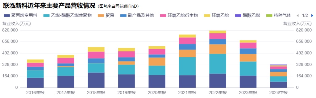 数据显示,2024年上半年,国内光伏新增装机同比增长30.68%,但产业链价格下降等问题依然严峻。行业内卷的背景下,由于联泓新科的议价权不高,当家产品EVA“有量无价”,拉低了公司整体的盈利能力。
