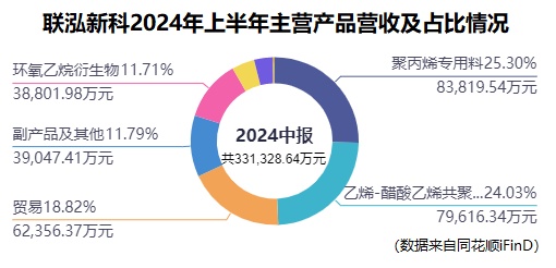 联泓新科的代表产品是聚丙烯专用料(以下简称“PP”)与乙烯-醋酸乙烯共聚物(以下简称“EVA”),其中EVA是光伏胶膜的主要材料。二者营业收入占总营收的比重常年在50%以上。