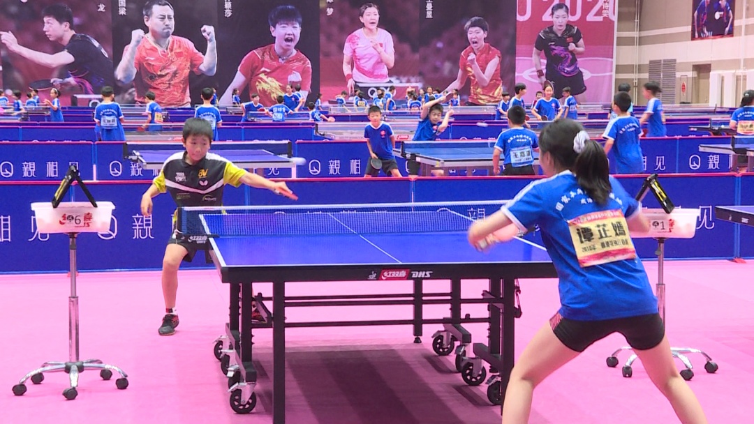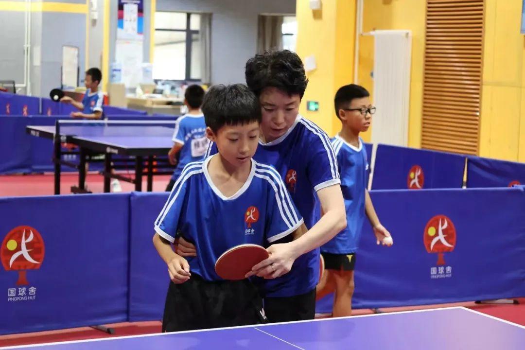 场馆内,乒乓球发出的清脆声、乒乓少年的嘹亮口号声此起彼伏。教练员紧张起来,紧盯热身,亲身示范,手把手教学,从基础站姿到节奏技巧,每个步骤都严格要求。