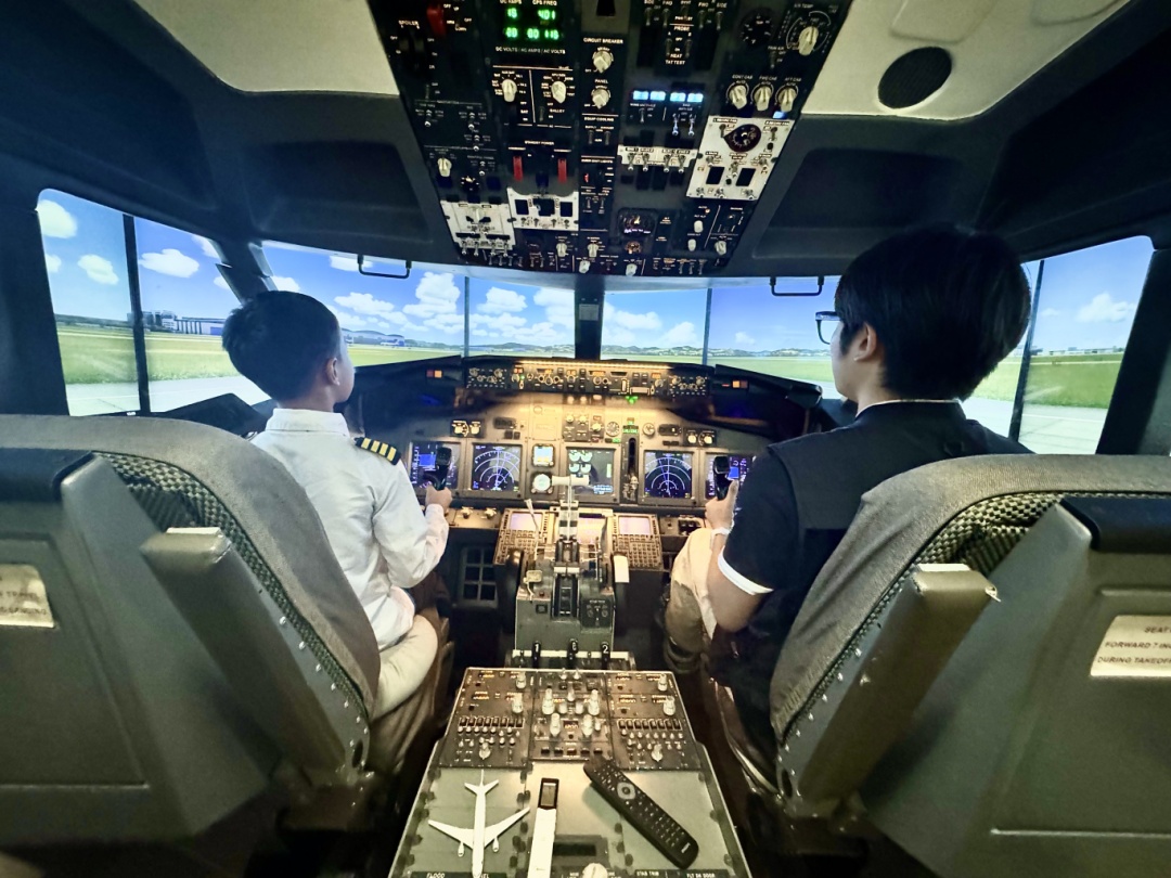 “想不想体验一下驾驶飞机的感觉呀?”“想!”伴随着队员们的欢呼,各位“小飞行员”依次进入飞行舱,调定起飞襟翼、推杆加速油门、定位预设航道……逼真的飞行体验,让不少小朋友直呼“过瘾”。“原来开飞机要操控这么多开关和按钮,学到了很多新知识。”小朋友张轩睿说。