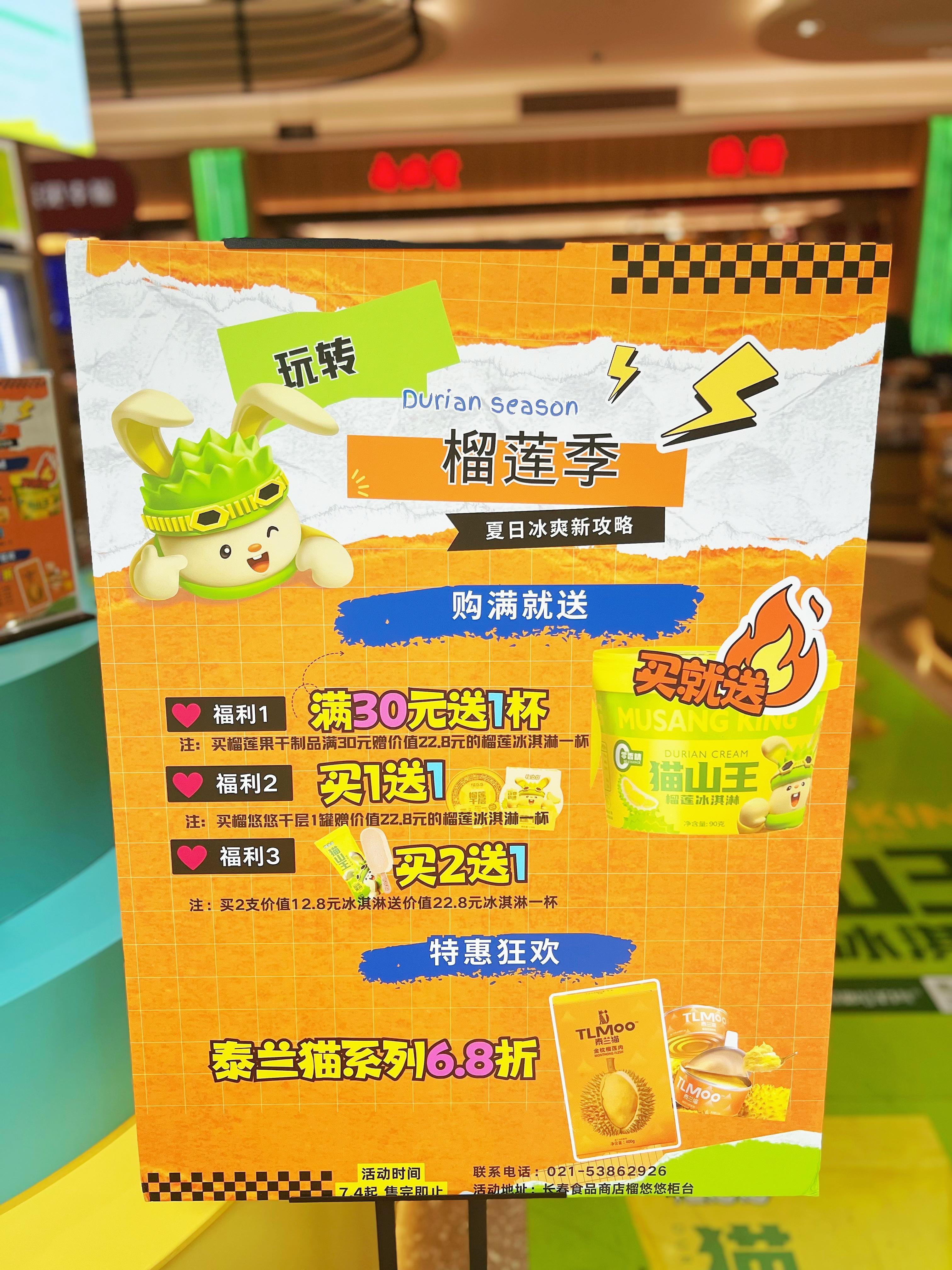 据介绍,自5月底对外营业以来,光是猫山王榴莲冰棍每月就要售出3000多支,不少顾客都成为了回头客,再配上店里的优惠活动,价格则更为实惠。