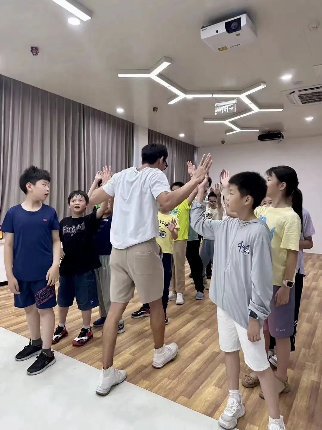 课上,教练们向孩子们介绍了游戏规则,随后通过简单的游戏让大家舒展四肢、肘关节等,心肺功能也调节到最佳状态。