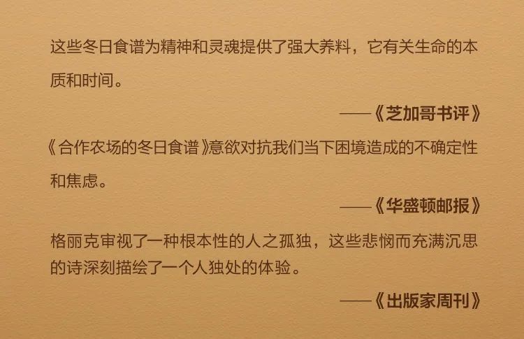 《合作农场的冬日食谱》,凝集诺奖得主格丽克一生回忆,审视人的存在中根本性的孤独